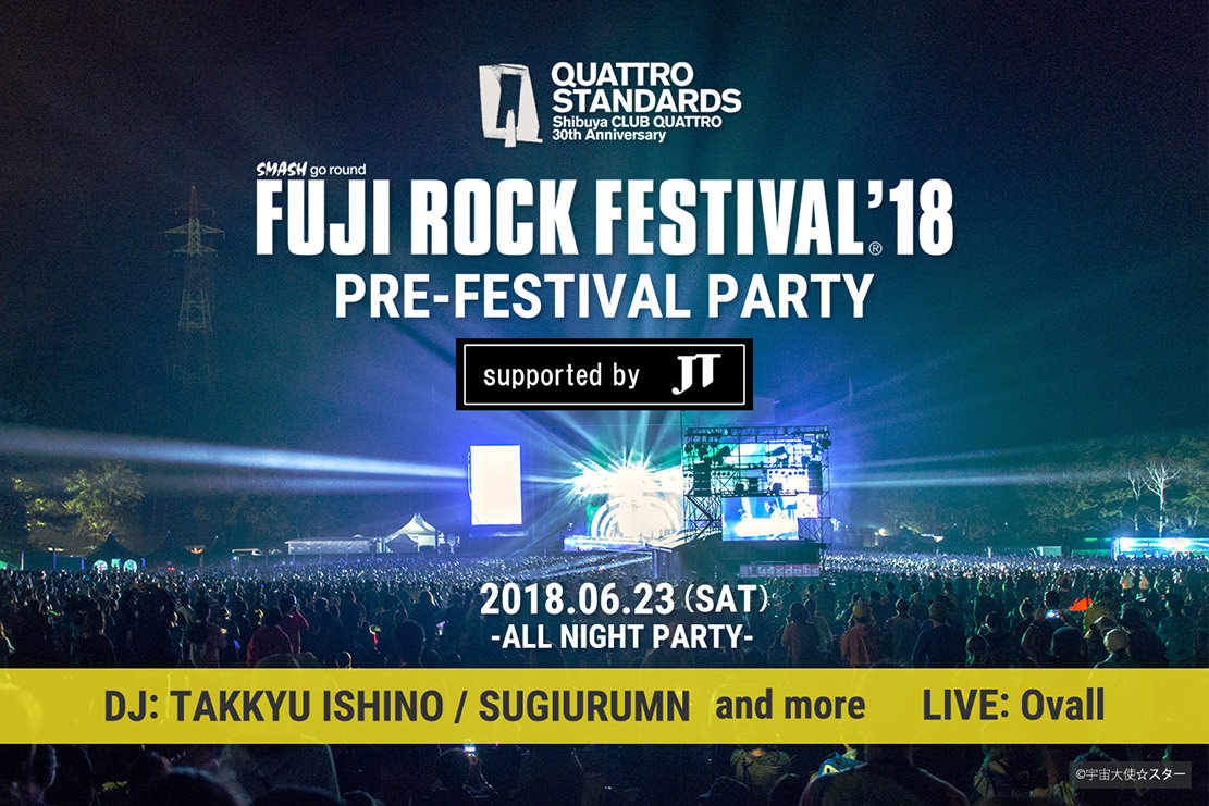 FRF '18 Pre-Festival Party to be held at Club Quattro which has reached its 30th anniversary. The party will feature DJ's and live music with artists familiar to Fuji Rock such as Ovall, Takkyu Ishino! Get a taste of Fuji Rock ahead of time!
